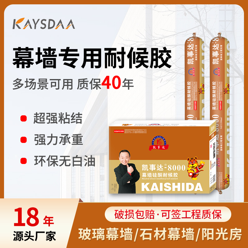 高標(biāo)準(zhǔn)幕墻硅酮耐候膠產(chǎn)品型號(hào):凱事達(dá)-8000產(chǎn)品規(guī)格:750克/支,20支/箱產(chǎn)品顏色:黑色主要用途大型玻璃幕墻非結(jié)構(gòu)性搭接或?qū)用芊?用于大型鋁板、石材幕墻接縫密封;用于中空玻璃二道粘接密封;混凝土、磚瓦、陶瓷、塑料及金屬板間接縫密封;